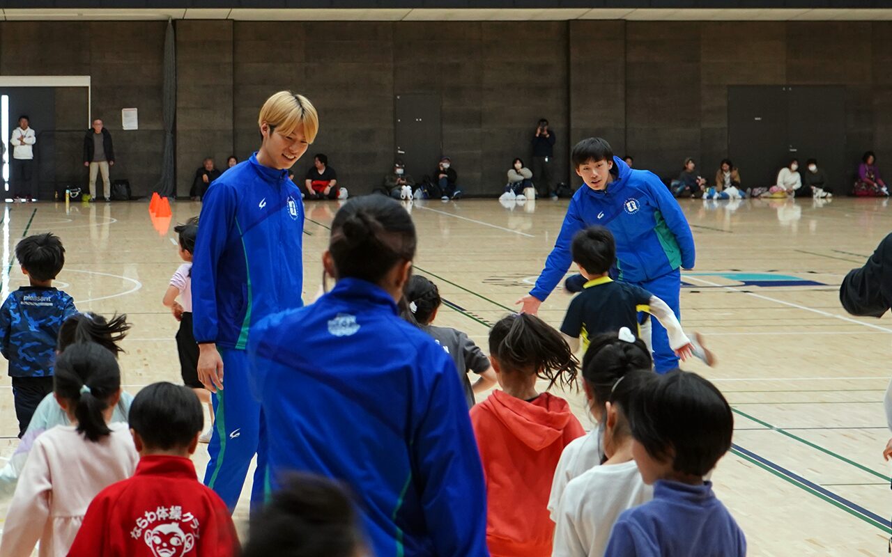 友岡トレーナー・飯塚選手の背中を見て子どもたちと対話しながら、運営補助に勤しみました。