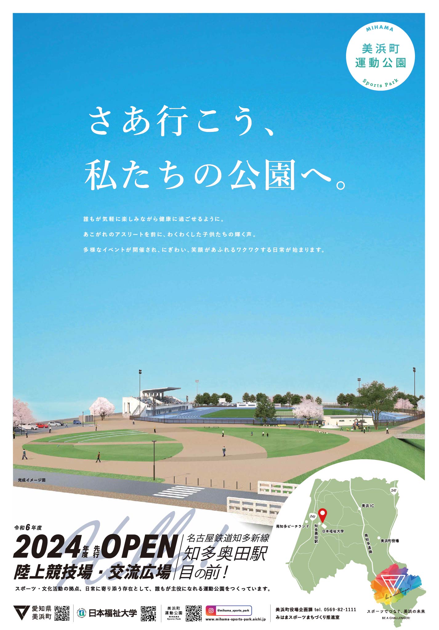 美浜町運動公園のポスターが完成しました! 美浜町運動公園のポスターが完成しました! スポーツの関係者はもちろん、 名鉄・知多奥田駅前の立地を活かしながら 誰もが立ち寄れる、利用できる公園であることを イメージしています。 美浜町内外の各所で掲出がされる予定です。 お出かけの際はぜひ見つけてみてください! @mihama_sports_park この記事のタイトルとURLをコピーする 建設工事が進んでいます!(2023年3月) 前の記事 <Movie>みはまスポーツフェスティバル2023を公開しました! 次の記事